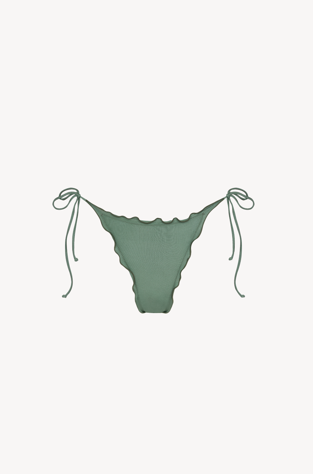 The Melting Bottom features a ruched back with delicate ruffle detail on the sides. This bottom features a cheeky coverage and adjustable side ties for a perfect fit.