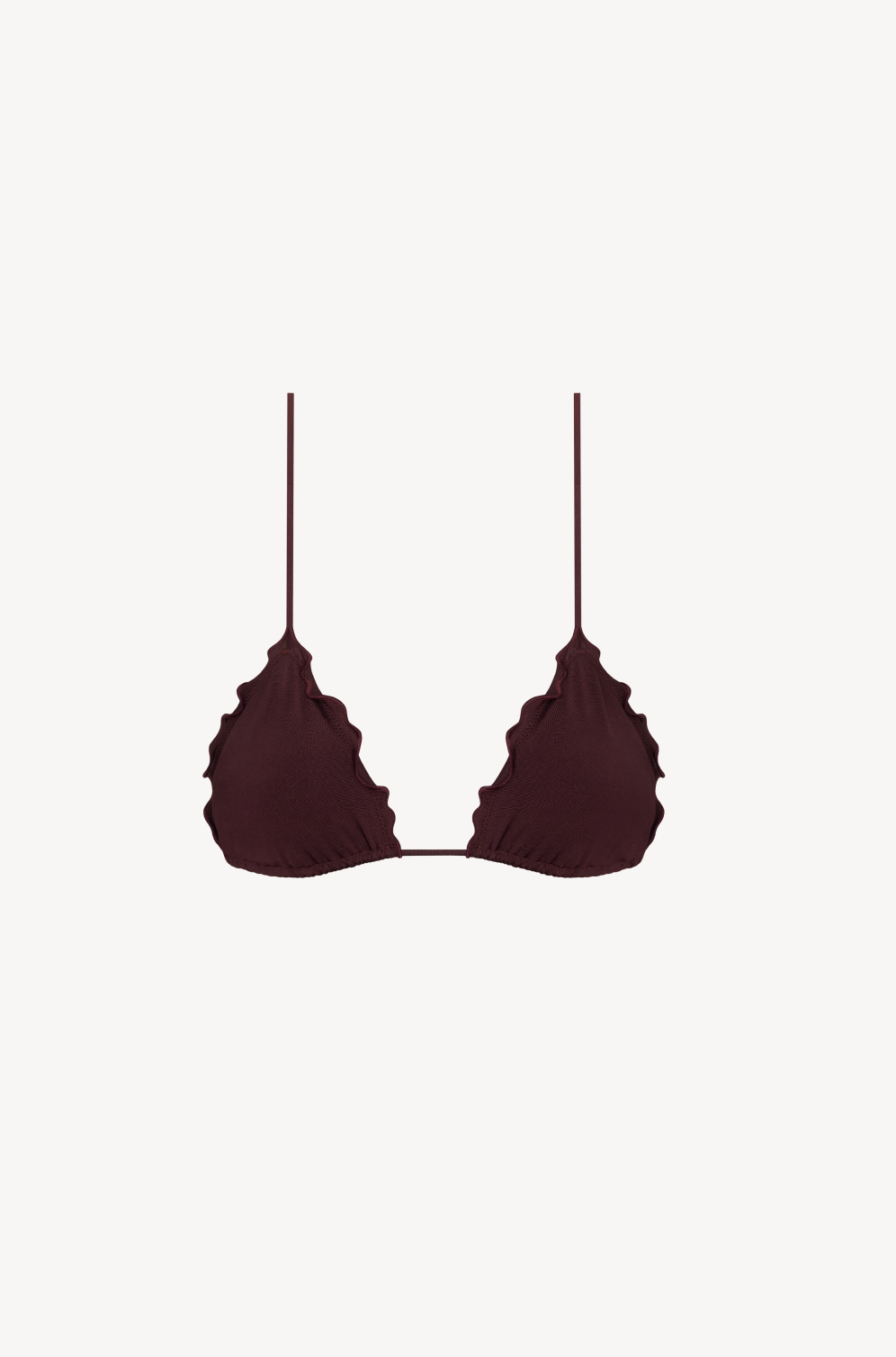 The Melting Bra is a classic triangle bikini shape with cute ruffle edge detail. It features a traditional tie-back and halter neck, allowing you to adjust it to fit perfectly.